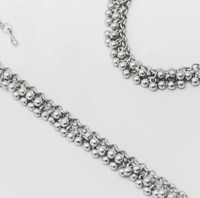 Pair Golden & Silver Pearl Payal/Anklets – Traditional Soundless Pearl Anklet Jewelry for Women & Girls (Pair)